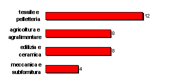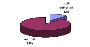 Il 12% degli e-marketplaces analizzati è di tipo multisettoriale, mentre l'88% è di tipo verticale, ovvero si occupa degli scambi B2B in uno specifico settore. Tra questi ultimi il primato spetta ai mercati che gestiscono gli scambi nel settore tessile e pelletteria (21%).